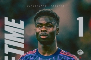 得票率33%!英超官方:萨卡被球迷票选为桑德兰vs阿森纳全场最佳